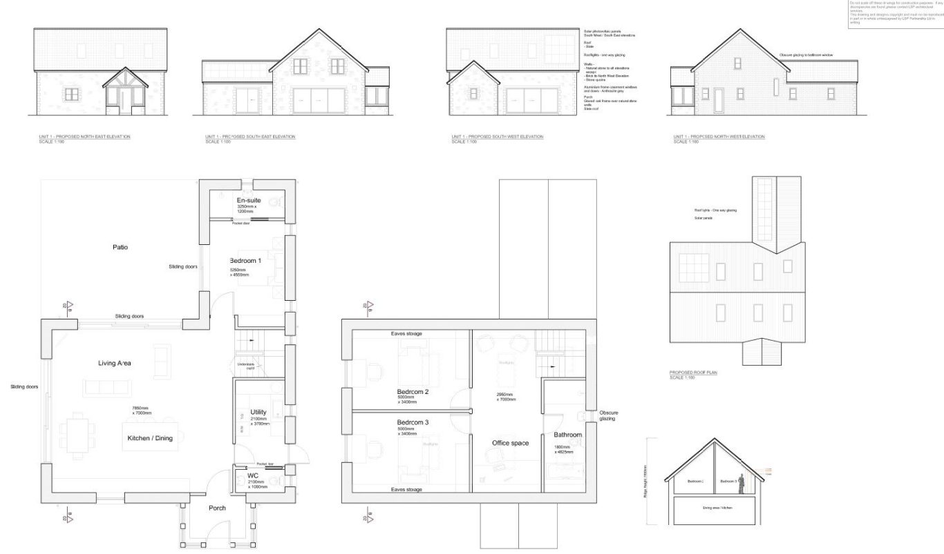 The Brief was to design a three bedroom home within the footprint of the existing barn. The design incorporates open plan living with separate sitting room, study and parking.